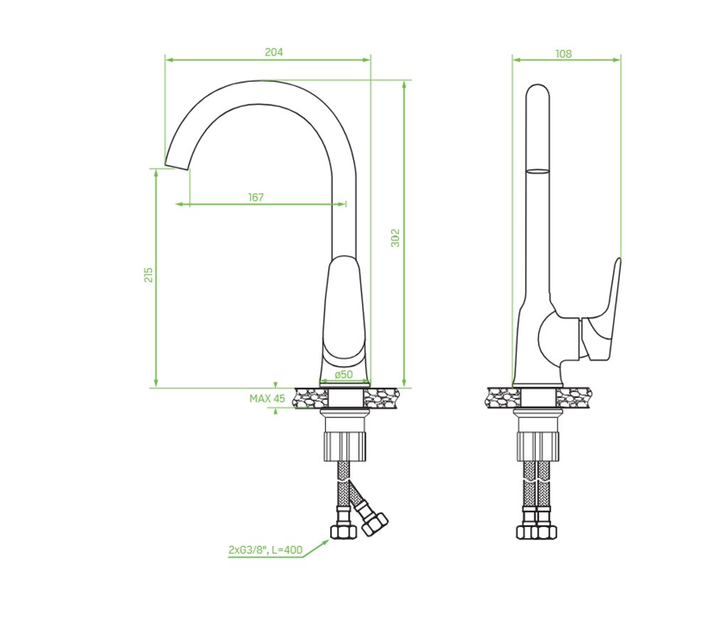 Spôsob montáže: stojaca – batéria sa montuje priamo do pracovnej dosky kuchynského drezu