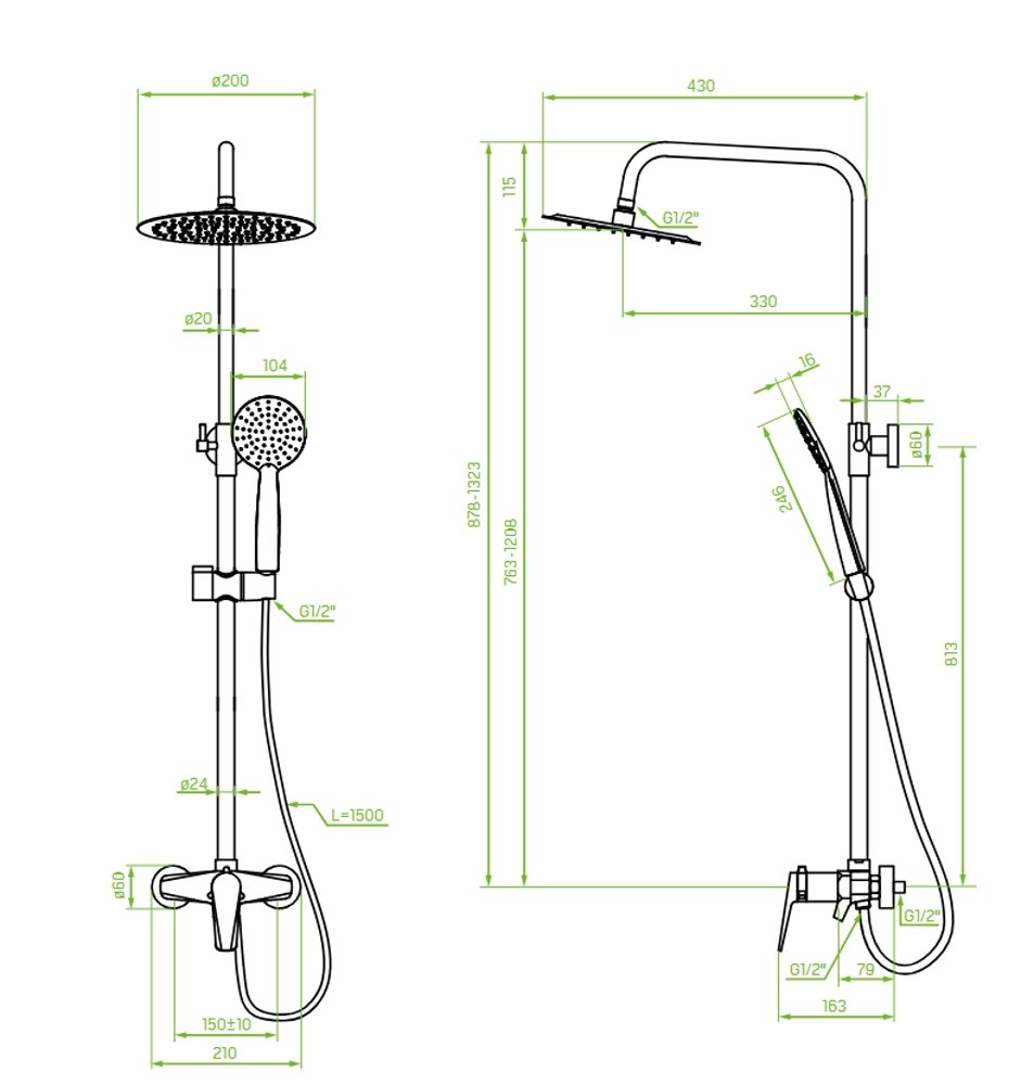 Predstavujeme vám Laveo Rubio sprchový set s batériou – elegantné riešenie pre modernú kúpeľňu, ktoré kombinuje biely (alebo čierny) korpus s luxusnými zlatými detailmi. Tento set obsahuje hornú sprchu Ø 200 mm, ručnú sprchu, výtokovú vylievku a batériu so systémom „zimný štart“. Rozsah výšky držiaka 878–1323 mm, hĺbka montáže 430 mm a dĺžka hadice 1,5 m predurčujú tento model pre komfortné sprchovanie aj napúšťanie vane.