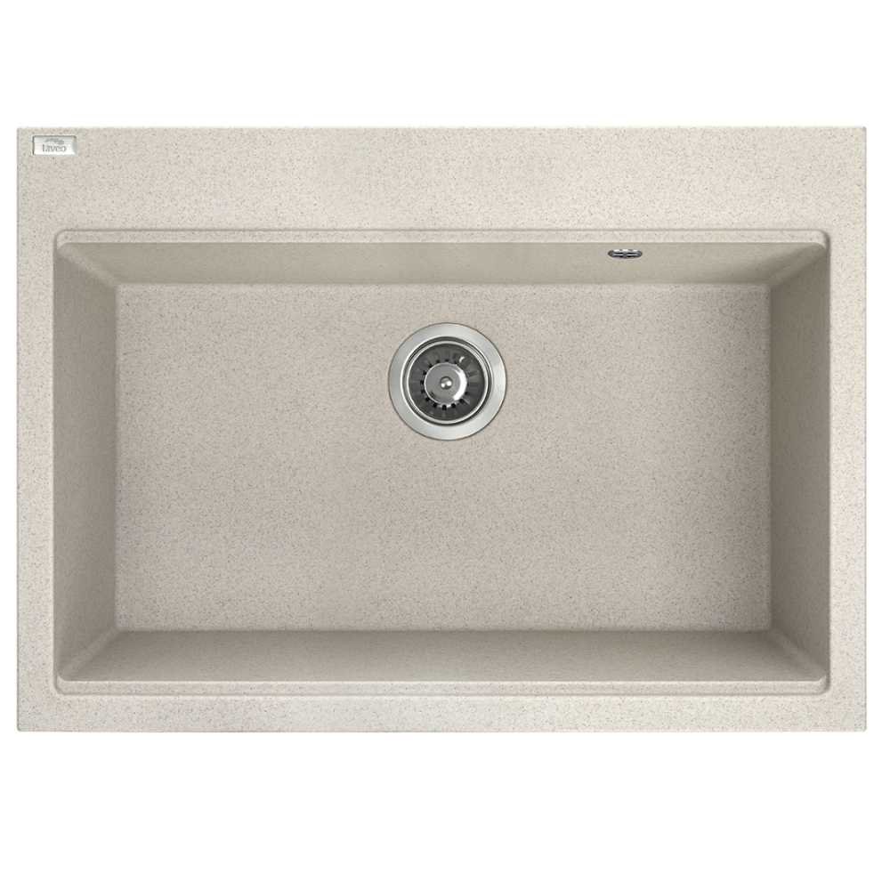 Jemne béžový granitový drez Laveo Tau je elegantné riešenie pre modernú kuchyňu so skrinkou od 60 cm. Vysoká odolnosť voči teplotám až 250 °C, nárazom, poškriabaniu a zafarbeniu zabezpečuje dlhú životnosť.