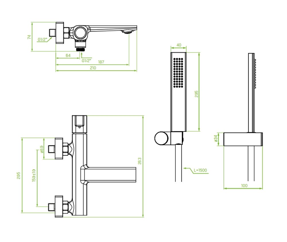 Laveo Tores je nástenná vaňová batéria so sprchovým setom, ktorá spája moderný dizajn s funkčnosťou. Vyrobená z kvalitného mosadzu a ocele, batéria zaručuje odolnosť a dlhú životnosť. Je dostupná v troch elegantných povrchových úpravách: chróm, čierna a zlatá "šampáň"