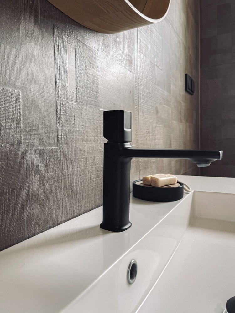Laveo Tores je moderná stojaca umývadlová batéria s automatickým klik‑klakom, ktorá spája funkčnosť s elegantným dizajnom. Povrch batérie v lesklom čiernom prevedení zaručuje nadčasový vzhľad a jednoduchú údržbu.