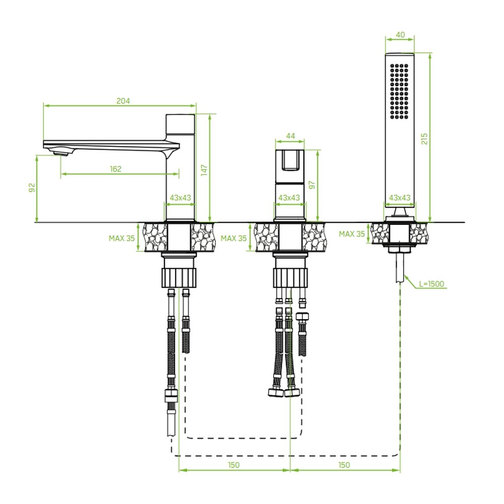 Laveo Tores je stojaca vaňová batéria s tromi otvormi, ktorá spája moderný dizajn s funkčnosťou. Vyrobená z kvalitného mosadzu a ocele, batéria zaručuje odolnosť a dlhú životnosť. Je dostupná v troch elegantných povrchových úpravách: chrom, čierna matná a zlatá "šampáň".