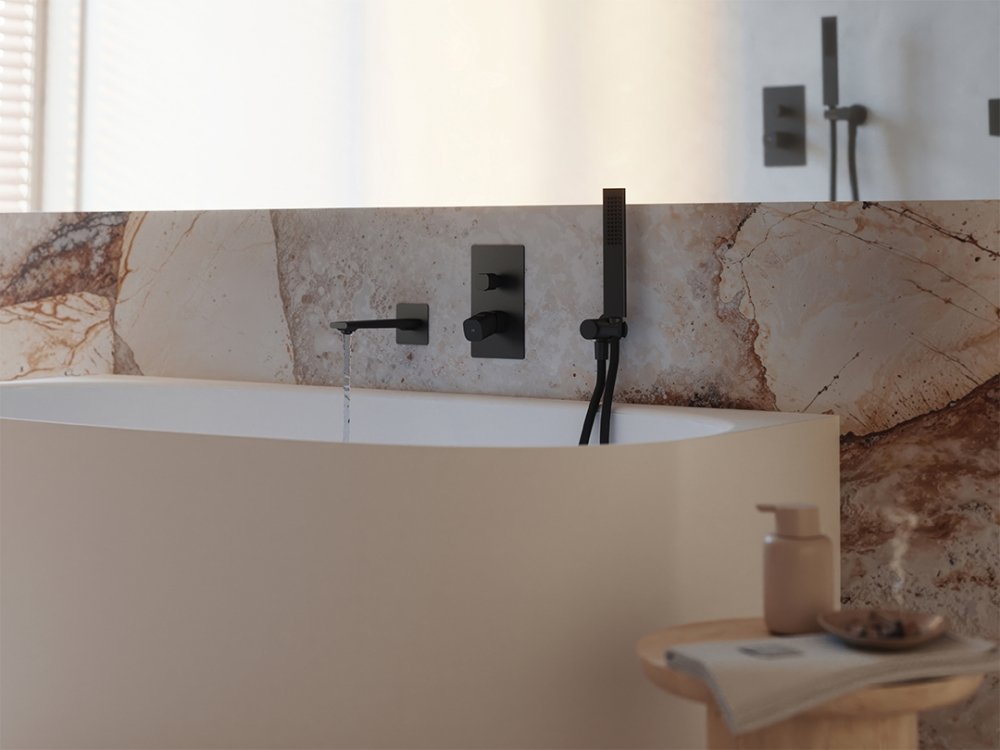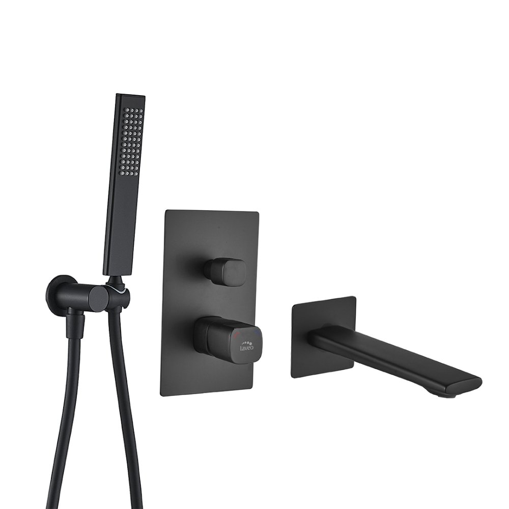 Laveo Tores je podomietková vaňová batéria s nástenným sprchovým setom v elegantnom čiernom prevedení. S jednouchytovým ovládaním, keramickou hlavicou a aerátorom Neoperl s antikameňovou úpravou ponúka komfortné ovládanie, úsporu vody a jednoduchú údržbu. Vhodná pre montáž na stenu.