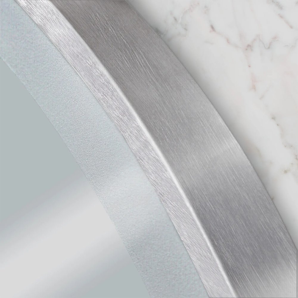 Moderné LED zrkadlo do kúpeľne – model MMJ v zlatom brúsenom oceľovom prevedení je elegantný a zároveň praktický doplnok pre vašu kúpeľňu. Okrúhly tvar s decentným rámom pôsobí nadčasovo a opticky zväčšuje priestor nad umývadlom. Zrkadlo je vybavené integrovaným LED podsvietením s trium nastavení farby svetla – teplé, neutrálne a studené, ktoré si môžete jednoducho prepínať dotykovým ovládaním. Funkcia proti zahmlievaniu (anti-fog) zabezpečí jasný obraz aj po horúcej sprche či kúpeli bez potreby utierania povrchu.