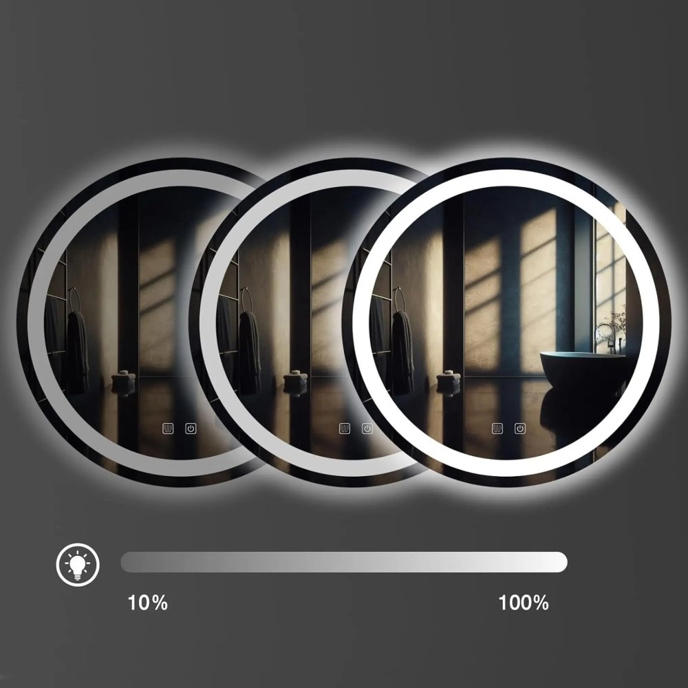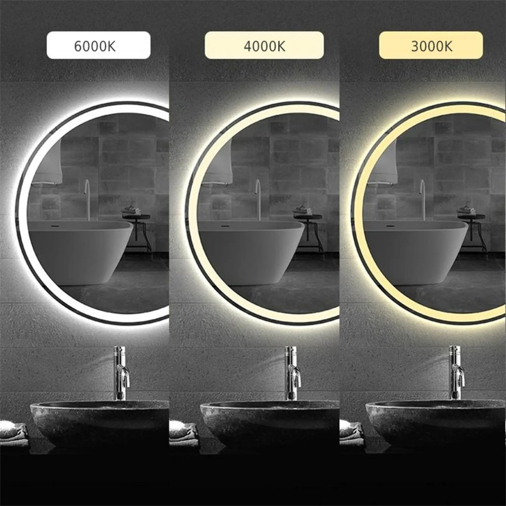 Elegantné LED zrkadlo – model BAS je moderný a funkčný doplnok do každej kúpeľne, ktorý spája štýlový dizajn s praktickými vlastnosťami. Okrúhly tvar a integrované LED osvetlenie vytvára ideálne svetelné podmienky pre líčenie, holenie alebo každodennú starostlivosť o vzhľad. Zrkadlo umožňuje výber troch farieb svetla – teplé, neutrálne a studené pomocou dotykového ovládača. Obsahuje aj funkciu odstránenia zahmlenia (anti-fog), ktorá zabezpečuje jasný obraz aj v parnom kúpeľnom prostredí. Dotykový ovládač svieti pri aktivite funkcie.