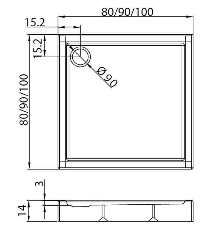 NEW TRENDY COLUMBUS štvorcová sprchová vanička 90 x 90 x 14 cm B-0412
