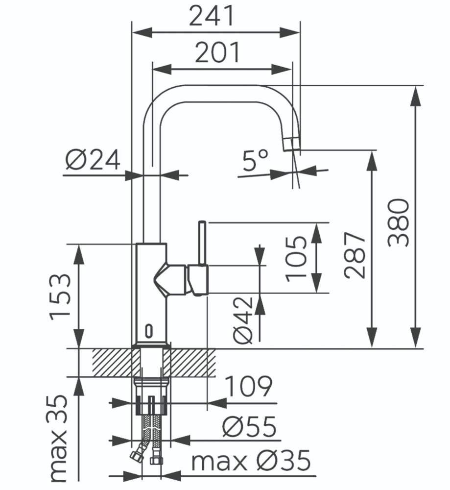 Výška odtoku vody:: cca 287 mm