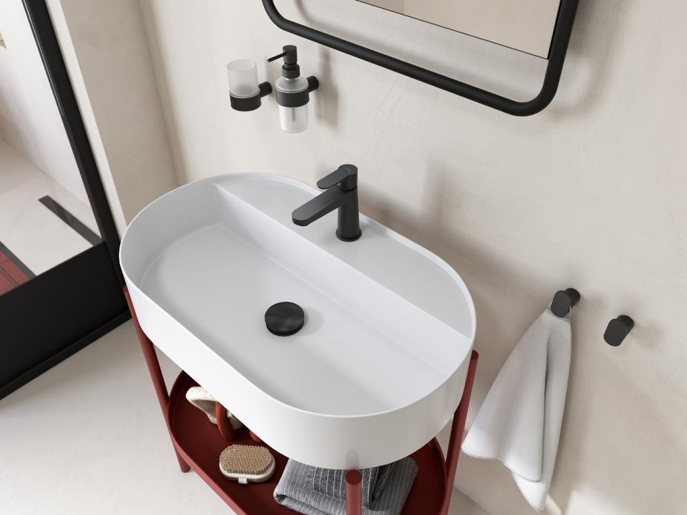 ✔ Moderný dizajn v čiernej farbe – výrazný estetický prvok pre súčasné kúpeľne.
