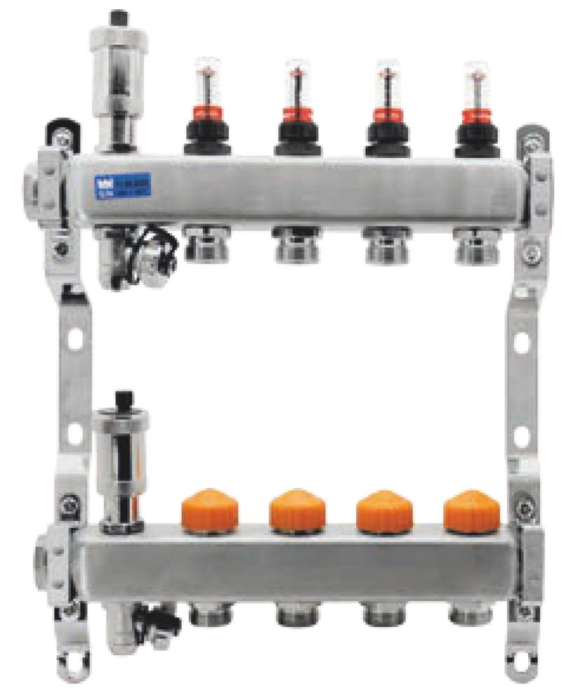 Telo rozdeľovača je vyrobené z kvalitnej nerezovej ocele AISI 304, ktorá zaručuje vysokú odolnosť voči korózii, dlhodobému tepelnému namáhaniu a chemickým vplyvom. Rozdeľovač je vhodný pre rodinné domy s veľkou plochou, bytové domy, administratívne a komerčné objekty, kde je potrebné rozdeliť vykurovanie až do 8 samostatných okruhov.
