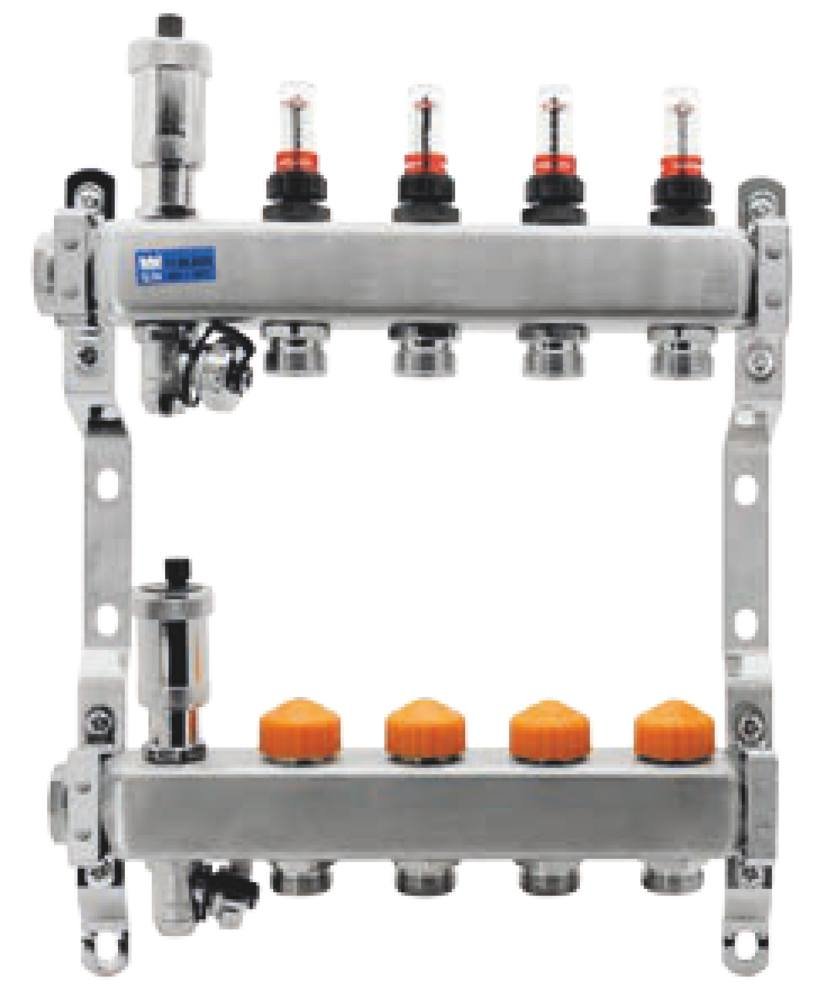 Novaservis Nerezový rozdělovač F-PRO s automatickou reguláciou prietoku pre 8 okruhov FPR-RZPU08AB - 8 okruhov