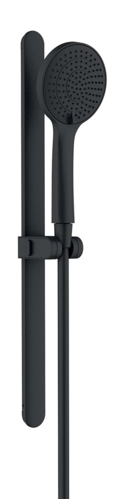 Sprchová súprava Novaservis Nostris v elegantnom čiernom prevedení ponúka úspornú 3-polohovú sprchovú hlavicu s prietokom len 9 l/min, čo šetrí vodu bez kompromisov v komforte sprchovania. Súprava obsahuje hadicu s AntiTwist ochranou a posuvný držiak, ktorý umožňuje flexibilné nastavenie výšky. Tento kompaktný a ľahko montovateľný set je ideálny doplnok ku klasickým sprchovým batériám.