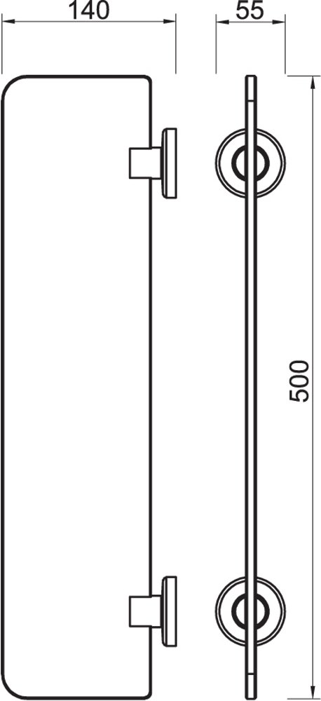 So šírkou 500 mm a hĺbkou 140 mm poskytuje polica dostatočný priestor pre väčšinu kozmetických fliaš, sprchových gélov, šampónov či dekorácií bez toho, aby zaberala príliš veľa miesta na stene. Nízka výška len 55 mm zabezpečuje čistý a nechcený minimalistický profil dizajnu.