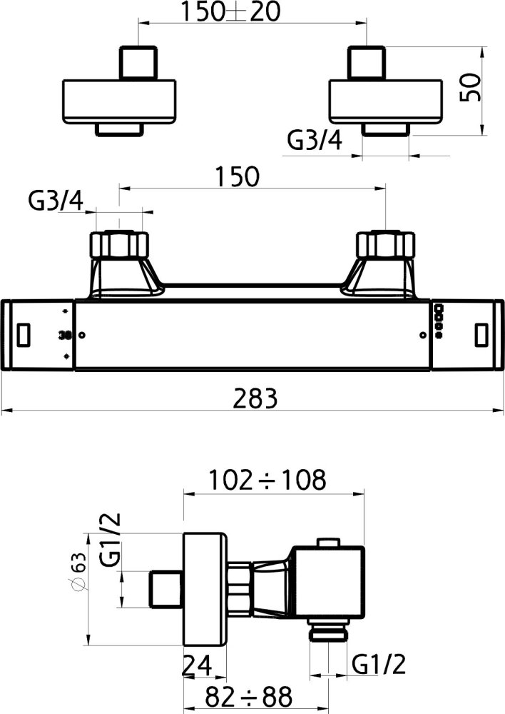 Novaservis AQUASAVE sprchová termostatická batéria bez príslušenstva 150 mm, chróm 2860/1,0