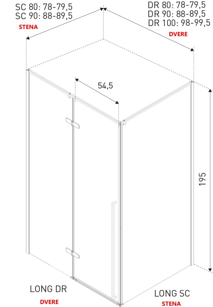 Novoterm LONG ELEMENT CHR sprchový kút bez vaničky 100 x 90 x 195 cm, sklo číre - CHRÓM - 100 x 90 cm