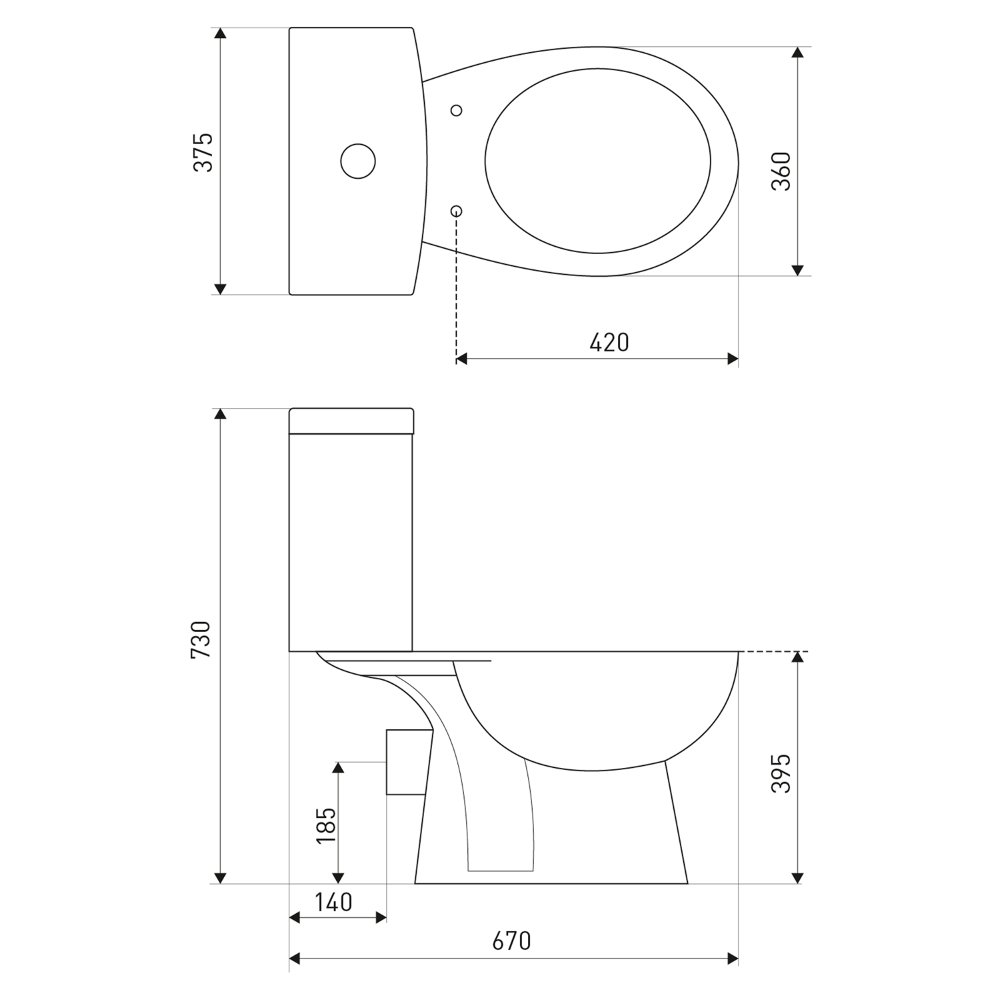 Stojací WC kompakt s bezokrajovou vírovou splachovacou technológiou, dvojitým splachovaním 3/6 l a sedátkom s tichým zatváraním.