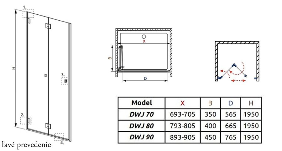 Radaway Carena DWB sprchové dvere zalamovacie 90 x 195 cm - Sklo číre, ľavé