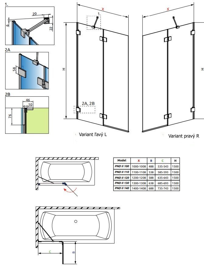 Radaway ESSENZA PRO BRUSHED GOLD PND II vaňová zástena 100 x 150 cm 10102100-99-01R - 100 cm Pravá