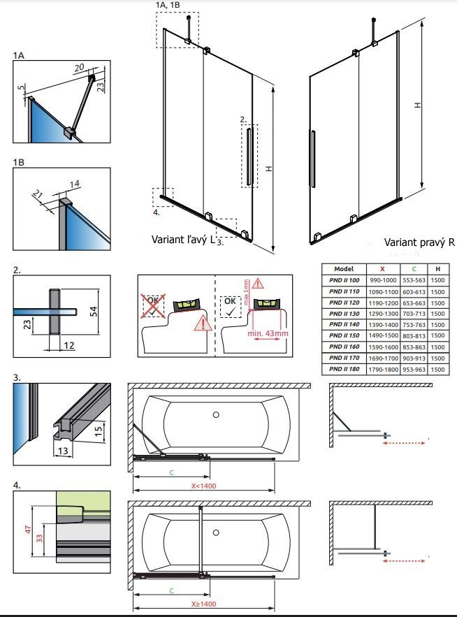 Radaway FURO BRUSHED COPPER PND II vaňová zástena 150 x 150 cm 10109788-93-01R+10112744-01-01 - 150 cm Pravá