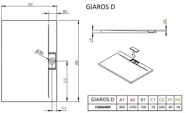 Radaway Giaros D sprchová vanička z mramorového zlepenca 120 x 80 x 4 cm MKGD1280-03