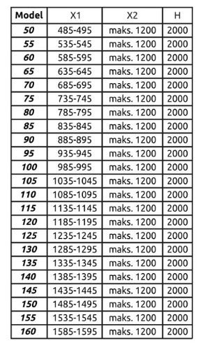| Hĺbka (vzdialenosť od steny) | max. 120 cm |