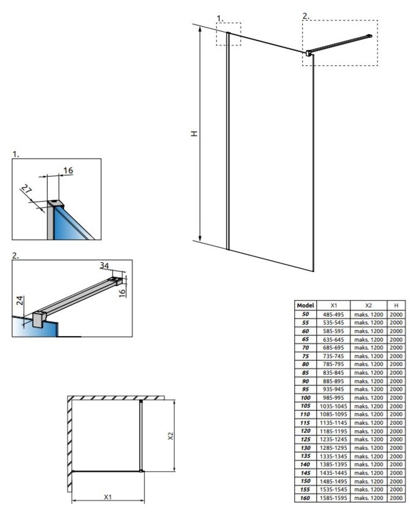 Vďaka hrúbke skla 10 mm je konštrukcia mimoriadne stabilná a pevná, takže poskytuje pocit istoty aj pri väčších rozmeroch. Walk-in systém je zároveň praktický – bez dverí, bez mechanizmov, ktoré by sa opotrebovali, ľahko sa čistí a pri správnom osadení vytvára bezbariérový vstup vhodný pre kohokoľvek.