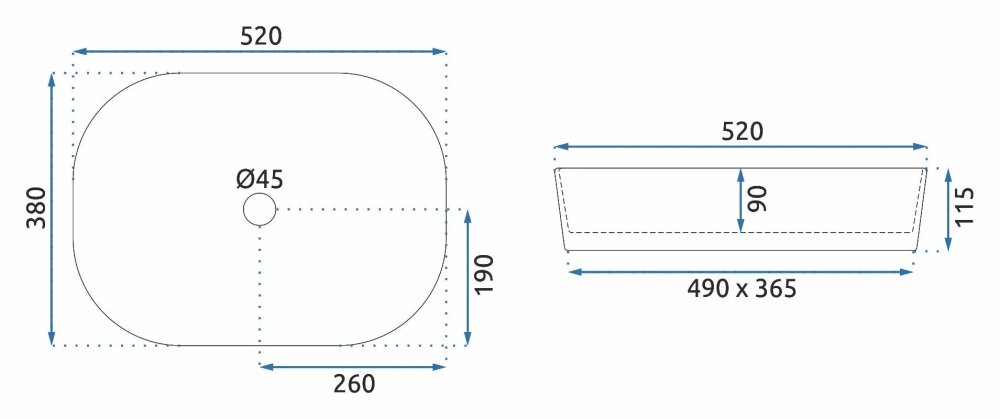 Rea ANGIE keramické umývadlo na dosku 52 x 37,5 cm U4121