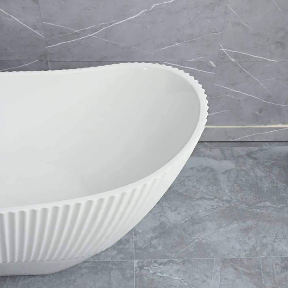 Voľne stojaca vaňa Rea Atena 170 je navrhnutá tak, aby okamžite upútala pozornosť. Charakteristická dekorová povrchová úprava vonkajších stien vane vytvára jemný dekoratívny efekt, ktorý skvelo dopĺňa moderné aj elegantné kúpeľňové aranžmá. Jej oplyvový tvar a jemne zvýšené okraje pôsobia esteticky a zároveň dodávajú priestoru pocit ľahkosti a vzdušnosti.