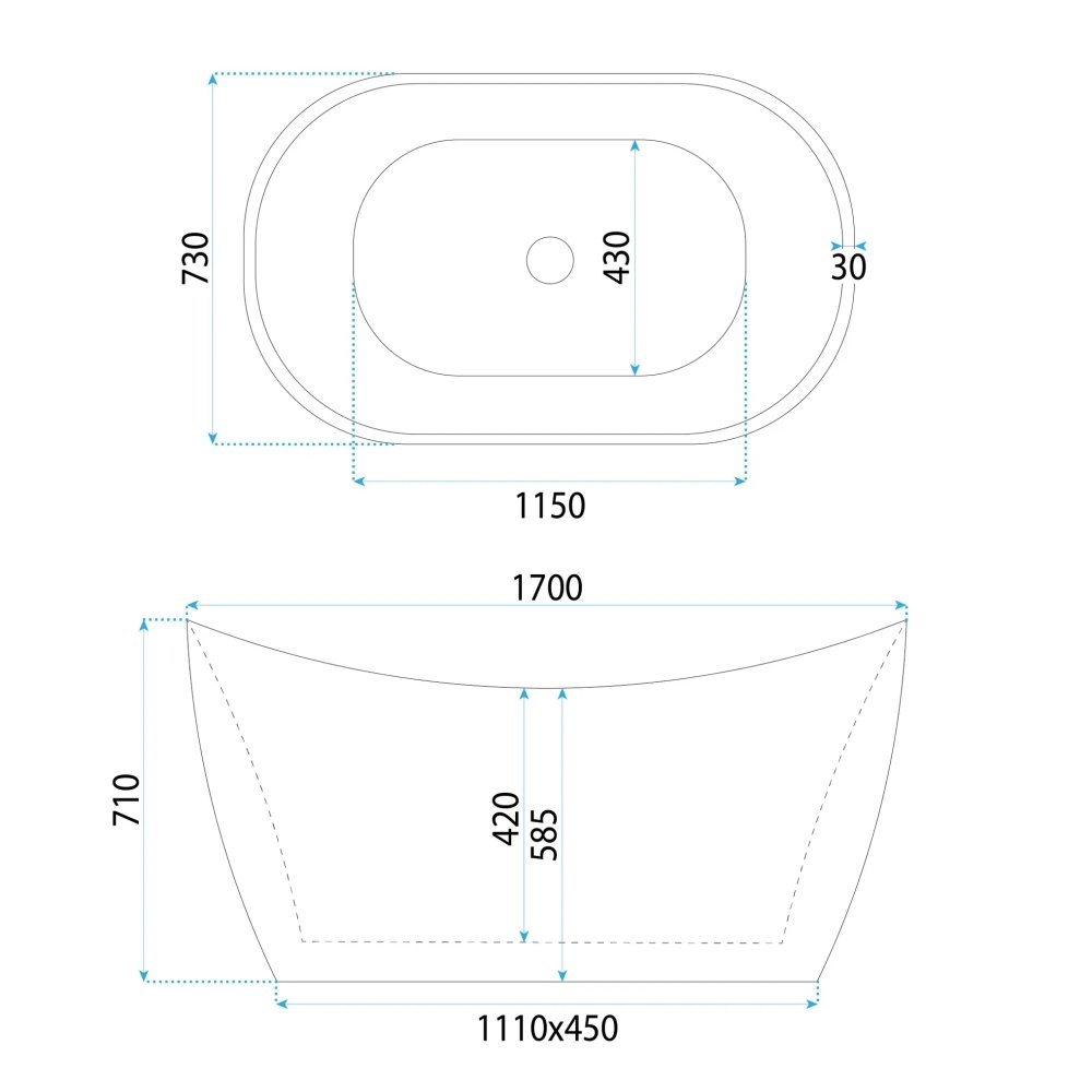 Rea ATENA voľne stojaca akrylátova vaňa 170 x 73 cm REA-W0127