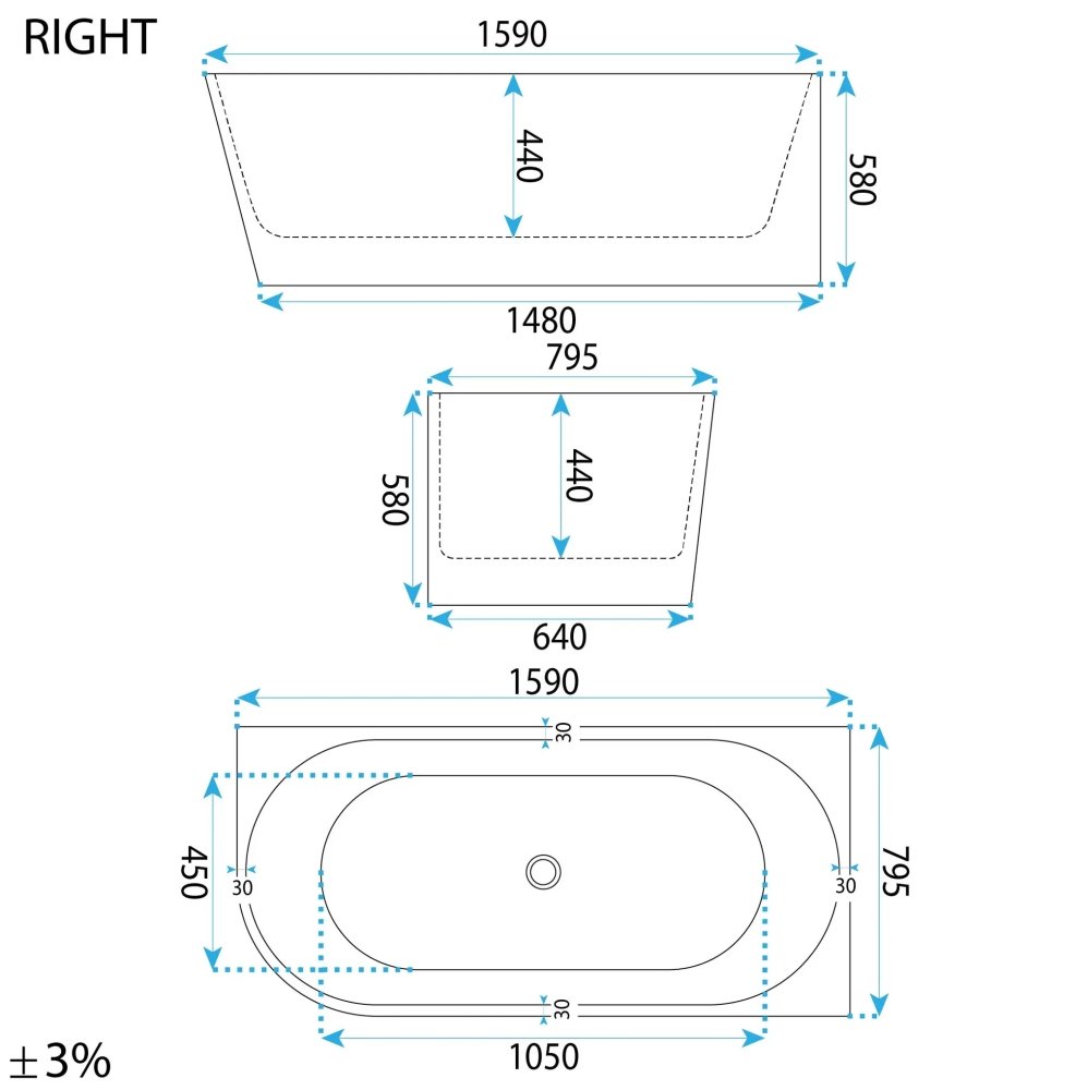 Rea BELLANTO SYDNEY voľne stojaca akrylátová vaňa / prístenná 160 x 80 cm W0253 - Vaňa - pravá