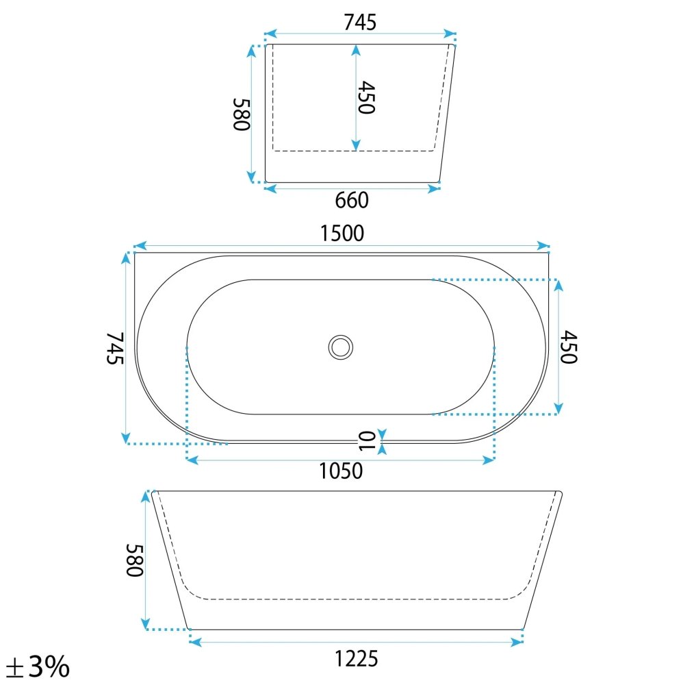 Rea CAPRI SLIM voľne stojaca akrylátová vaňa / prístenná 150 x 74,5 cm REA-W0503 - 150 cm