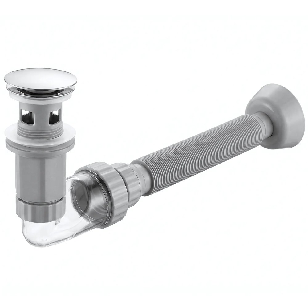 Zvoľte si praktické a funkčné riešenie do kúpeľne v podobe odtokového setu so sifónom a uzáverom Click-Clack v chrómovom vyhotovení. Tento výrobok spája estetické spracovanie s modernými riešeniami, ktoré uľahčujú údržbu. Konštrukcia je navrhnutá tak, aby maximálne zjednodušila montáž aj pravidelné čistenie odtoku.