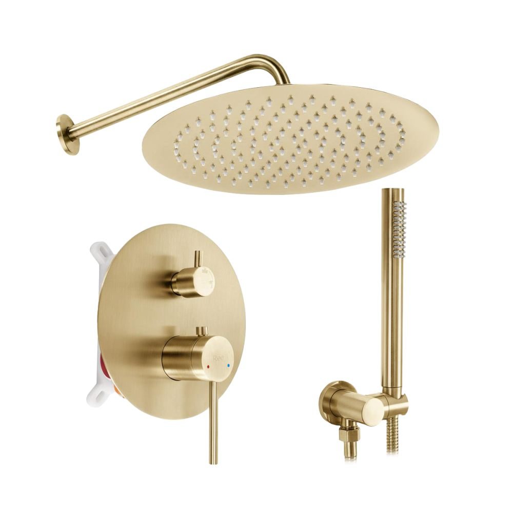 Podomietková sprchová sada od REA — séria Foss Clif, zlatá s pákovou batériou a inštalačným BOX-om. Elegantný a moderný dizajn, robustná mosadzná konštrukcia a praktické riešenie pre minimalistické kúpeľne. Kompletný set pripravený na montáž — ideálne pre sprchové kúty s podomietkovou inštaláciou.