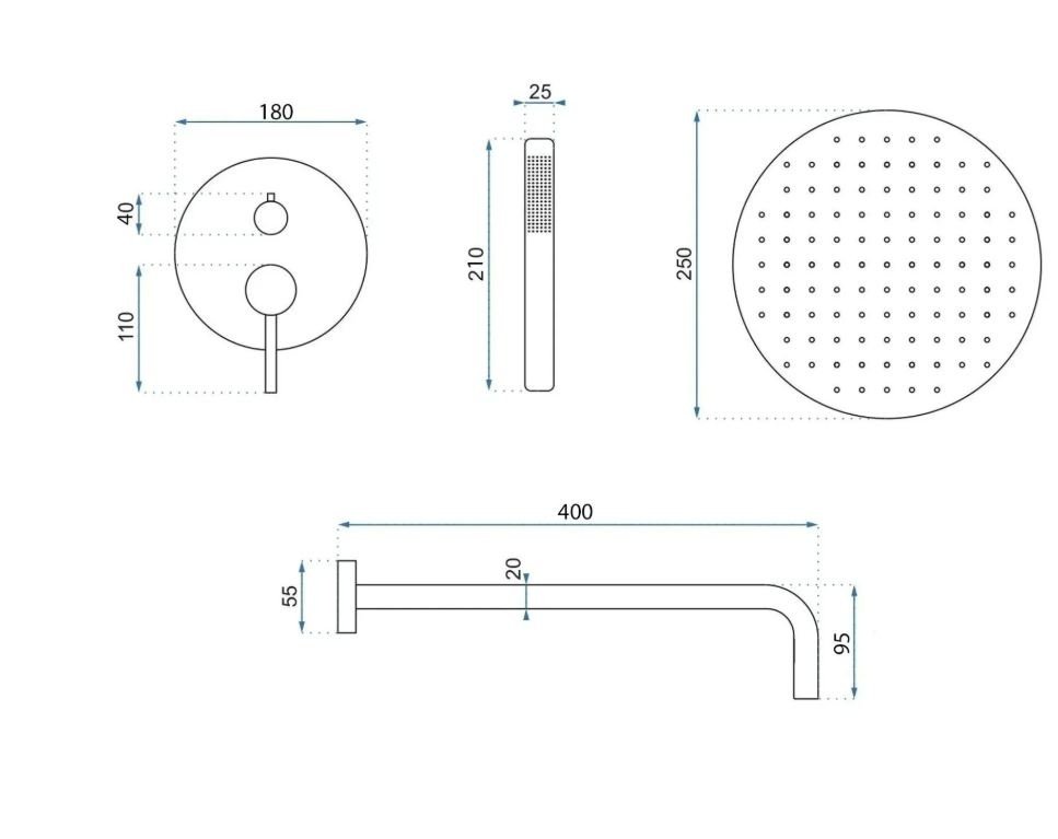 Kompletné sprchové riešenie — všetko potrebné pre sprchu v rámci jedného balenia.