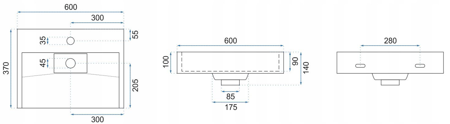 Rea GOYA BLACK umývadlo z liateho mramoru na dosku 60 x 37 cm U8779