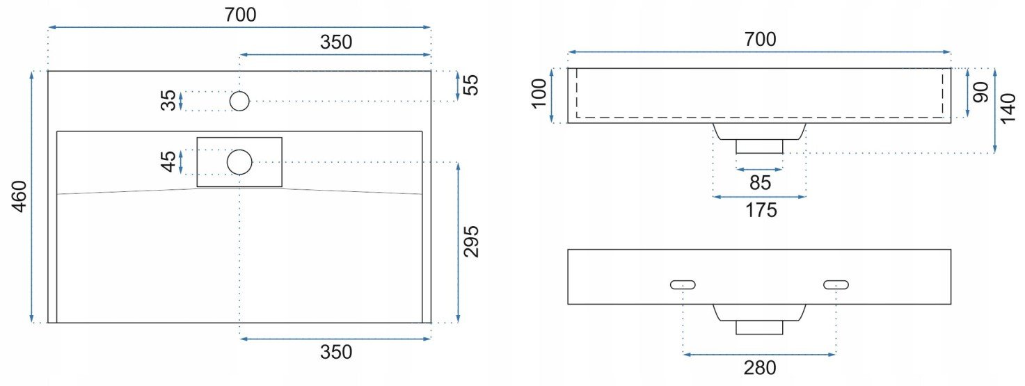 | Priemer odtokového otvoru (mm) | 45 |