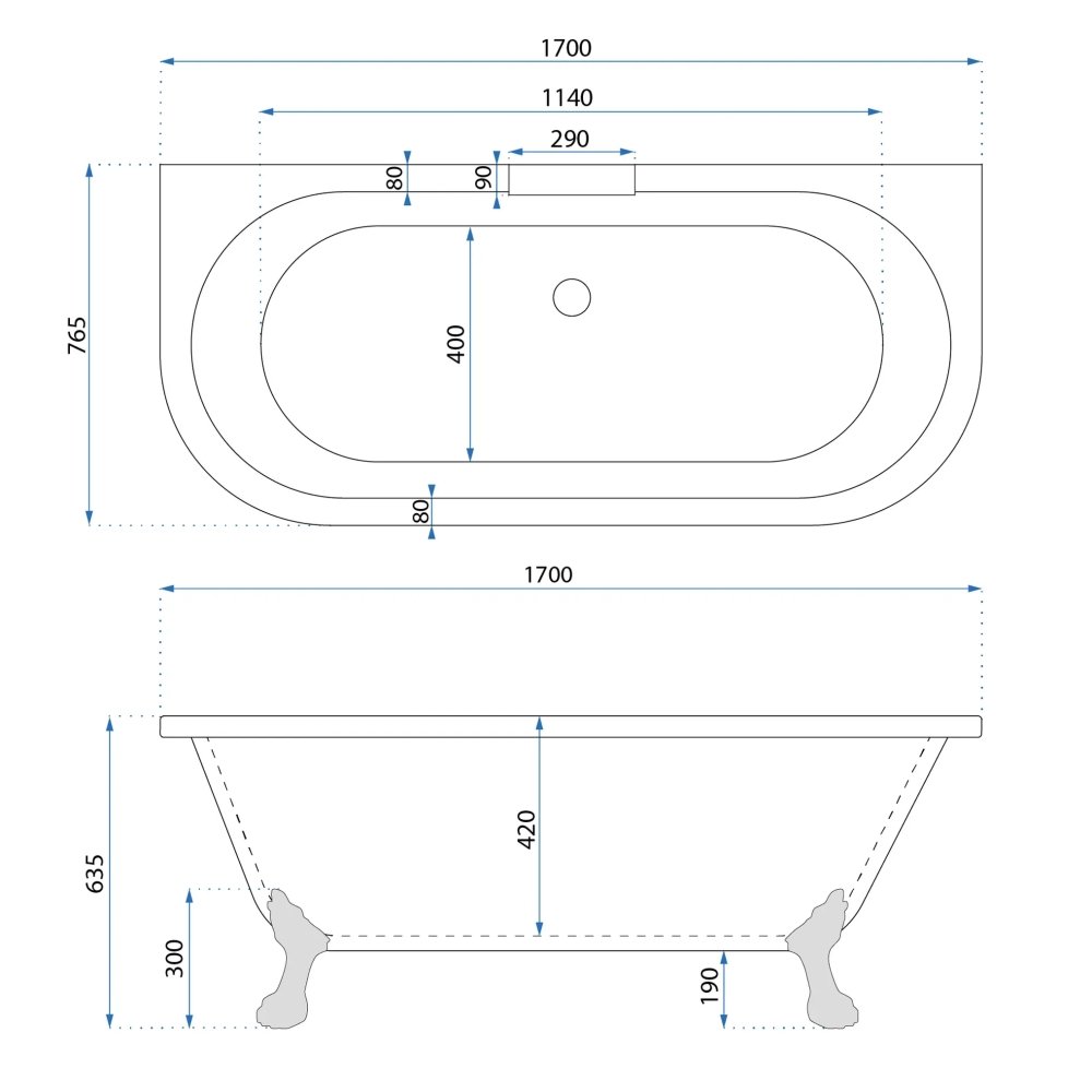 Rea KORFU voľne stojaca akrylátova vaňa / prístenná 170 x 76,5 cm REA-W5690 + REA-00694