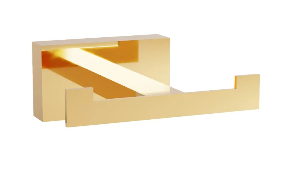 Elegantný držiak / vešiak do kúpeľne Rea OSTE 205 je praktický a štýlový doplnok, ktorý zorganizuje priestor Vašej kúpeľne a dodá jej sofistikovaný vzhľad. Vyrobený z kvalitného kovu s odolným povrchom v lesklom zlatom prevedení, ľahko udrží mokré uteráky, župany či iné kúpeľňové doplnky. Vešiak je určený na pevné pripevnenie na stenu pomocou skrutiek s ukrytým systémom montáže, vďaka čomu sú upevňovacie prvky esteticky skryté a výsledný efekt pôsobí čisto a luxusne.