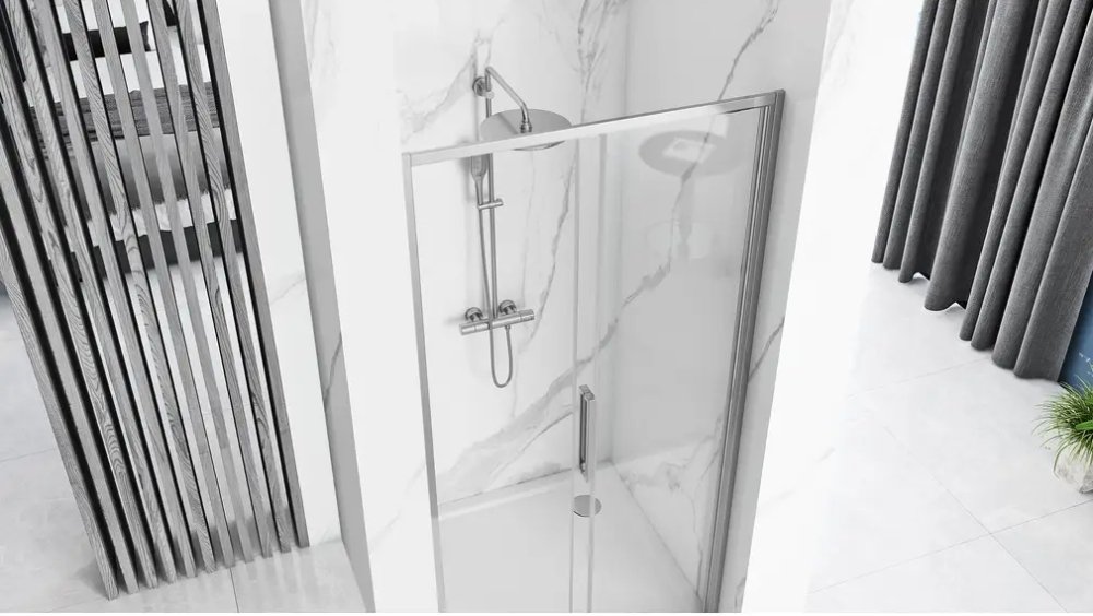 Chrómovaný hliníkový profil dodáva dverám lesklý, moderný a elegantný vzhľad, ktorý sa výborne hodí do kúpeľní s minimalistickým alebo industriálnym dizajnom. Použité 6 mm tvrdené sklo je odolné voči nárazom a v prípade rozbitia sa rozpadne na neostrých kúskov, čo zvyšuje bezpečnosť pri používaní. Vrstva Easy Clean znižuje adhéziu vodného kameňa a nečistôt – voda sa po skle ľahko steká, čo uľahčuje čistenie a znižuje potrebu intenzívneho údržbového zásahu.