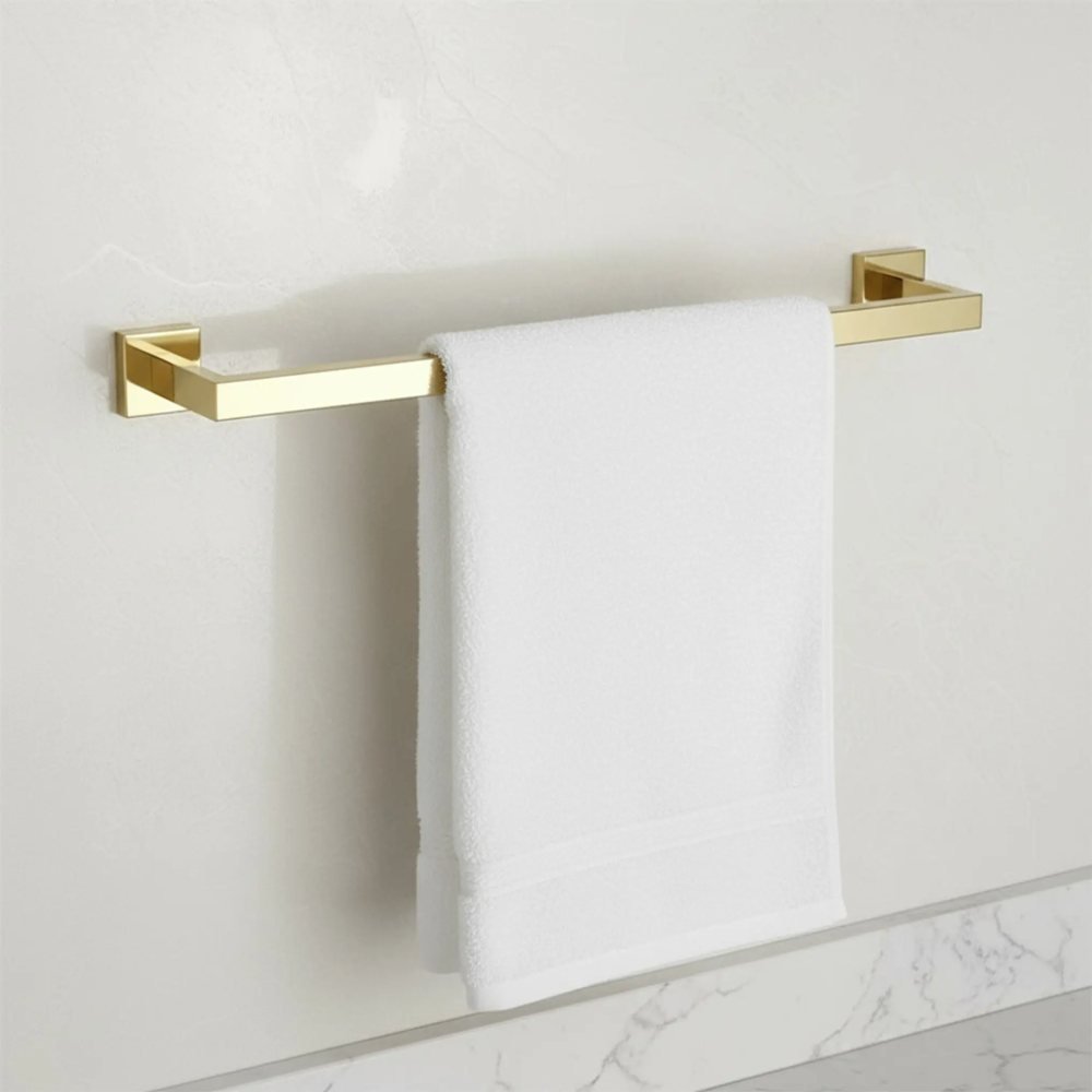 Minimalistický a geometrický dizajn s jemným zlatým odtieňom pôsobí elegantne a nadčasovo, čím vytvára jednotný a estetický celok v kúpeľniach s rôznymi štýlmi – od klasických až po ultra moderné interiéry. Tento set je vhodný nielen do domácností, ale aj do hotelových alebo komerčných priestorov, kde je dôležitá estetika aj funkčnosť.