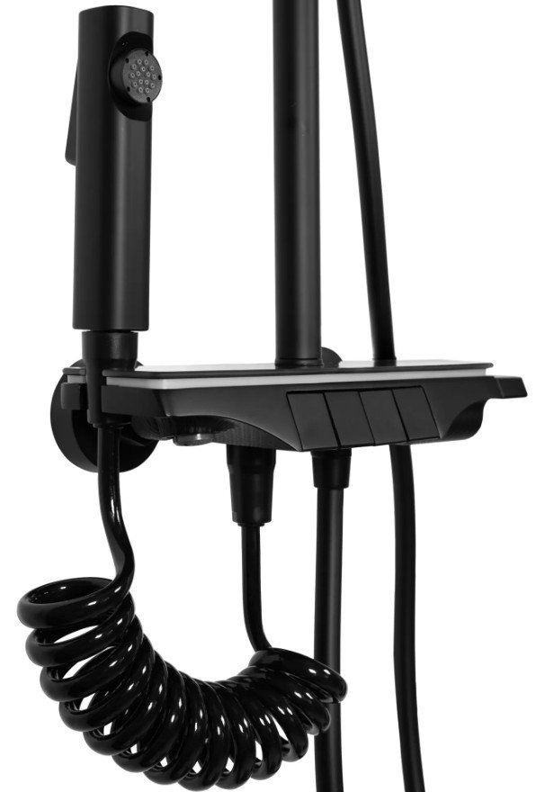 Sprchový set SAVIO LED black od výrobcu Rea je elegantný sprchový set s čiernou povrchovou úpravou, ktorý kombinuje moderný dizajn, jednoduchosť použitia a pohodlie. Súprava je montovaná na stenu, obsahuje všetko potrebné — batériu, ručnú sprchu, dažďovú sprchu, sprchový stĺp a hadicu. Keramická kartuša zaručuje spoľahlivú prevádzku, systém Anti-Calc predlžuje životnosť a montáž je rýchla vďaka štandardnej rozteči.