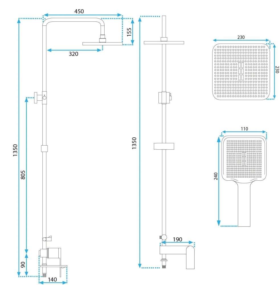 Hlavnou súčasťou je dažďová sprcha s rozmermi 23 × 23 cm, ktorá poskytuje široký a rovnomerný prúd vody – pre relaxačný a komfortný zážitok zo sprchy. Doplnková 3-funkčná ručná sprcha umožňuje prispôsobiť typ prúdu podľa preferencií, či už ide o jemnejší oplach alebo intenzívnejší prúd. Vďaka dlhému 150 cm sprchovému hadici a nastaviteľnému kĺbovému spojeniu si ľahko upravíte pozíciu sprchy podľa vašich potrieb.