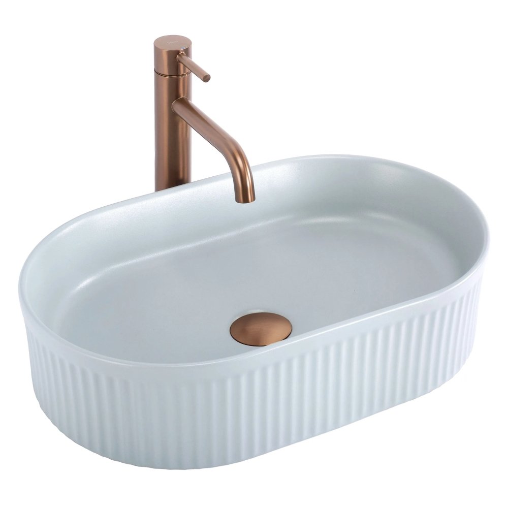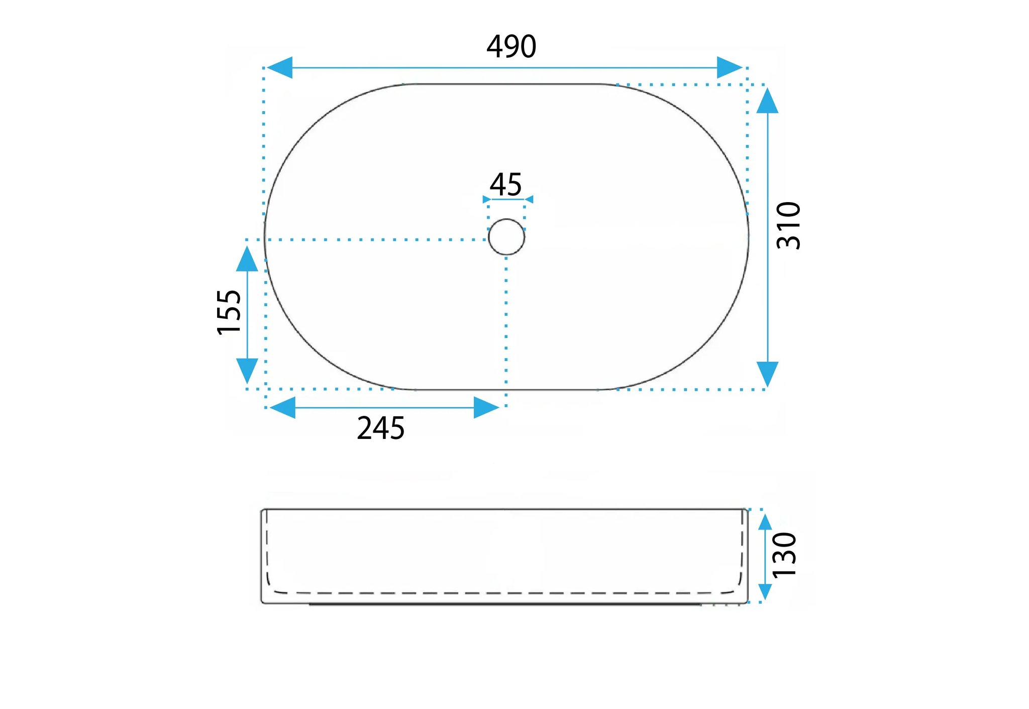 Elegantné umývadlo na dosku Rea Vanda Baby Blue Matt v jemnom pastelovom modrom odtieni s matným povrchom prináša do kúpeľne nádych sviežosti a štýlovosti. Vyrobené z kvalitnej sanitárnej keramiky. Rozmery: 490 × 310 × 130 mm (dĺžka × šírka × výška). Oválny tvar, bez otvoru na batériu a prepadu. Ideálne riešenie pre moderné kúpeľne, kde kombinujeme estetiku s praktickosťou.