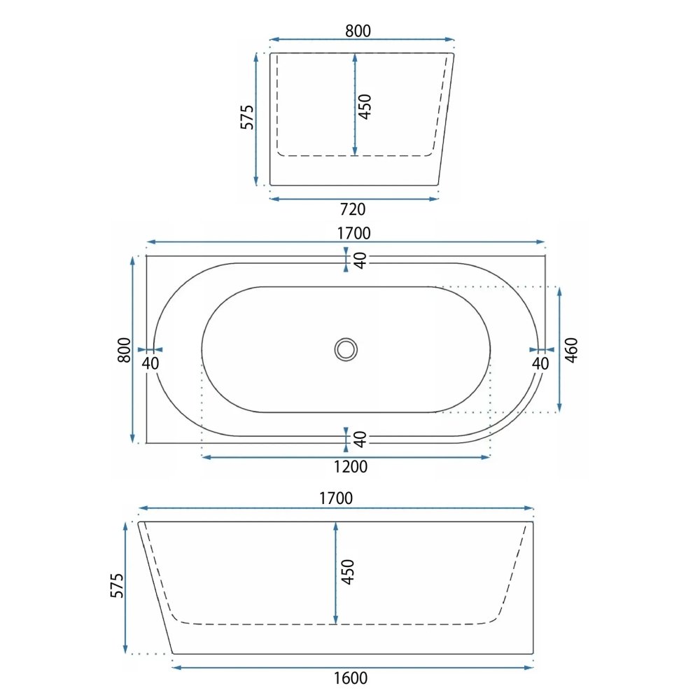Rea WENUS voľne stojaca akrylátová vaňa / prístenná 170 x 80 cm REA-W0129 - ľavá