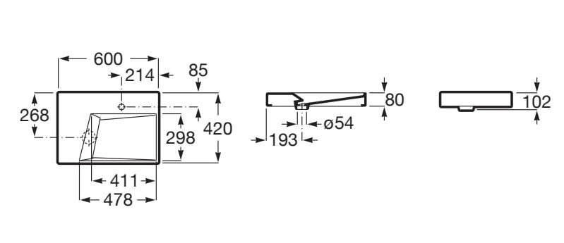Roca HORIZON GEOMETRIC FINECERAMIC® umývadlo na dosku 60 x 42 cm, biela lesklá A32727600B - Biela lesklá