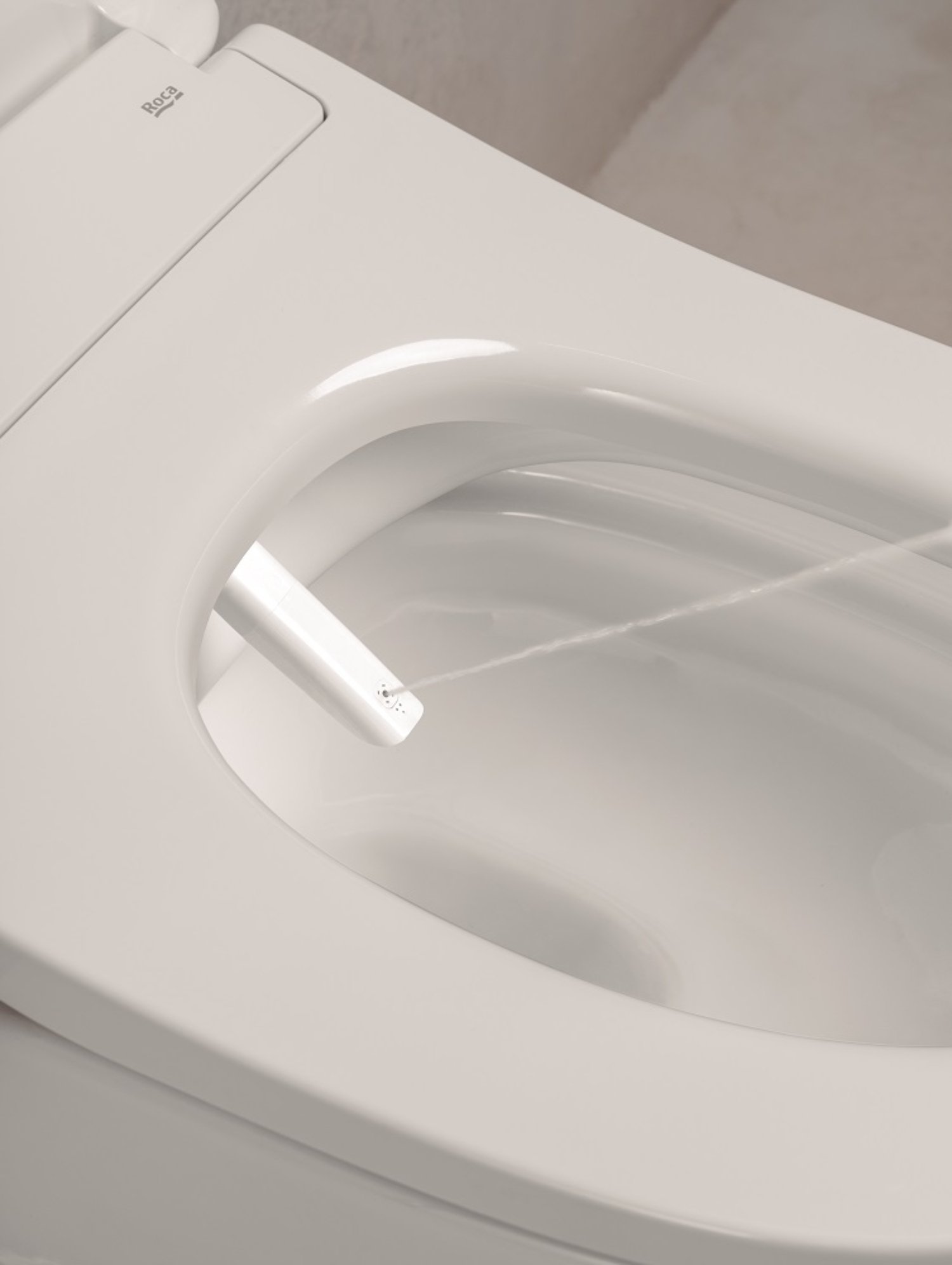 Toaleta je vybavená integrovanou bidetovou funkciou s nastaviteľným zadným a dámskym oplachom. Používateľ má možnosť regulovať polohu dýzy v 5 úrovniach, intenzitu prúdu vody aj jej teplotu. O hygienu sa stará samoczistiaca vymeniteľná dýza s UV dezinfekciou, ktorá sa automaticky čistí pred a po každom použití.