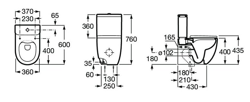 Roca MERIDIAN WC kombi prístenné 37 x 60 cm RimFree, A34224LS00+A341240000