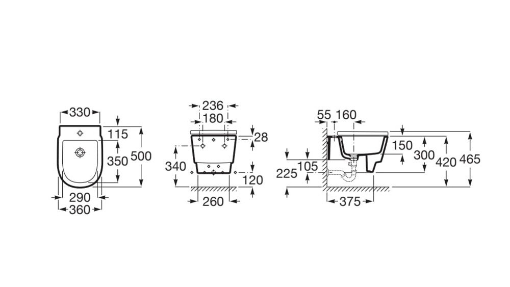 Funkčný závesný bidet Roca Tura s čistým, zaobleným dizajnom a rozmery 360 × 500 × 465 mm ideálny do modernej kúpeľne. Jednoduchá inštalácia na stenu pomocou modulu, jeden otvor na batériu a kapacita až 8 l. Perfektná voľba pre zvýšenie hygieny a komfortu vo vašej kúpeľni.