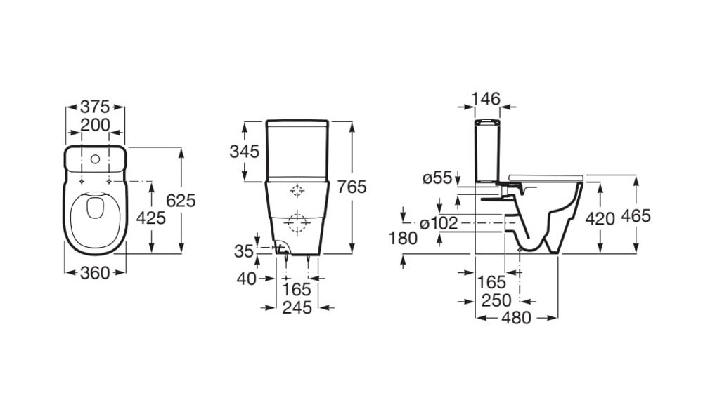 Roca TURA Compakt WC kombi 37,5 x 76,5 cm Rimless, spodný prívod vody A342697000+A341691000 - Biela
