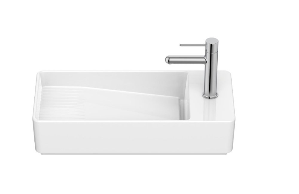 Vyrobené z kvalitnej sanitárnej keramiky s hladkým, ľahko udržiavateľným povrchom, umývadlo pôsobí nadčasovo a odolne. Asymetrický tvar a optimálne rozmery sú výsledkom premysleného dizajnu, ktorý ocenia architekti aj majitelia menších kúpeľní. K dispozícii je aj varianta s povrchovou úpravou Supraglaze®, ktorá zvyšuje odolnosť proti usadzovaniu vodného kameňa a zlepšuje hygienické vlastnosti povrchu.
