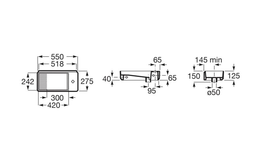Rozmery (DxŠxV): 550 × 275 × 125 mm – ideálne pre menšie kúpeľné priestory.